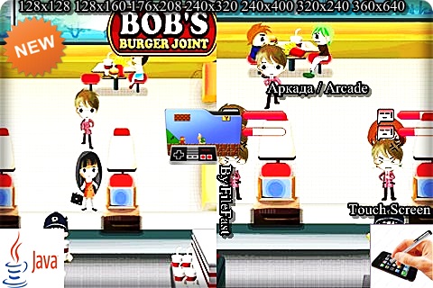 Бургеры у Боба - это специальное место, где уделяют особое внимание сервису для клиентов. Год выпуска/Year of issue: 2013 Жанр/Genre: Аркада / Arcade Категория/Category: Java игры/Java games Размер экрана/Screen size: 128x128 128x160 176x208 240x320 240x400 320x240 360x640 Разработчик/Developer: Fugumobile Платформа/Platform: Java Формат файла/File format: .jar Вид устройства/Appearance of the device: для телефонов/for phones Язык интерфейса/Interface language: английский (ENG) Touch Screen/Stylus: есть/there are Размер/Size: 2,57 Mb Статус игры/The status of the game: бесплатная/free Подготовил/Prepared by: FileFast