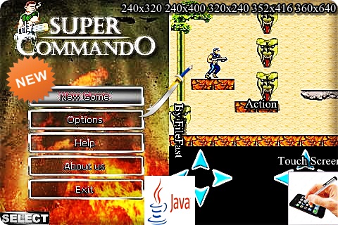 Super Commando – java-игра, похожая на Контру от Денди. Ты управляешь местным "рэмбо" и должен добраться до суперсекретной базы.